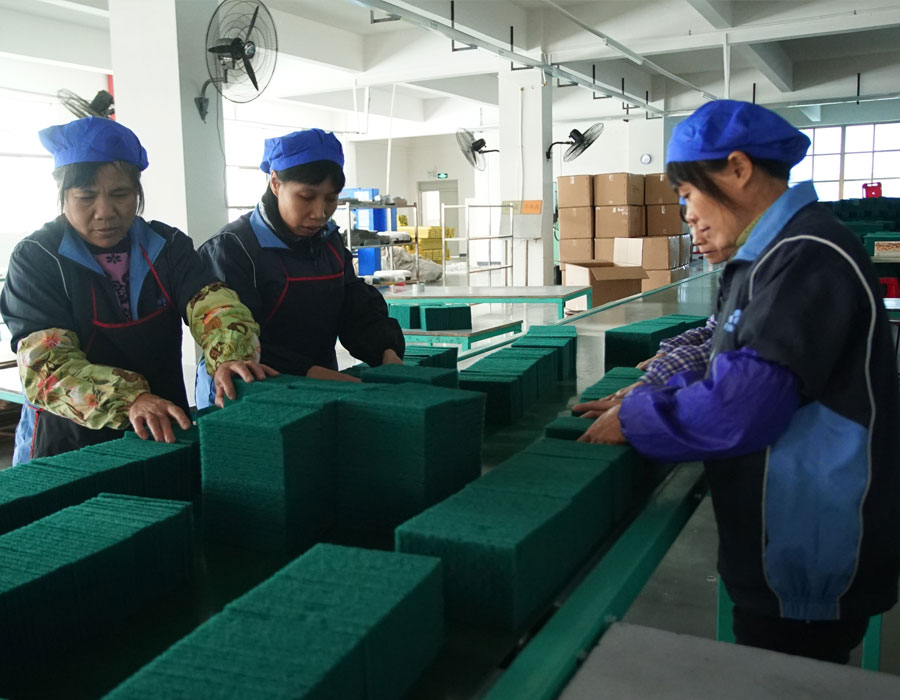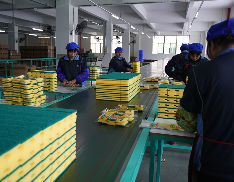 1个海绵及粘合车间,日产能达2800平方米的海绵百洁布和100立方米的海绵;